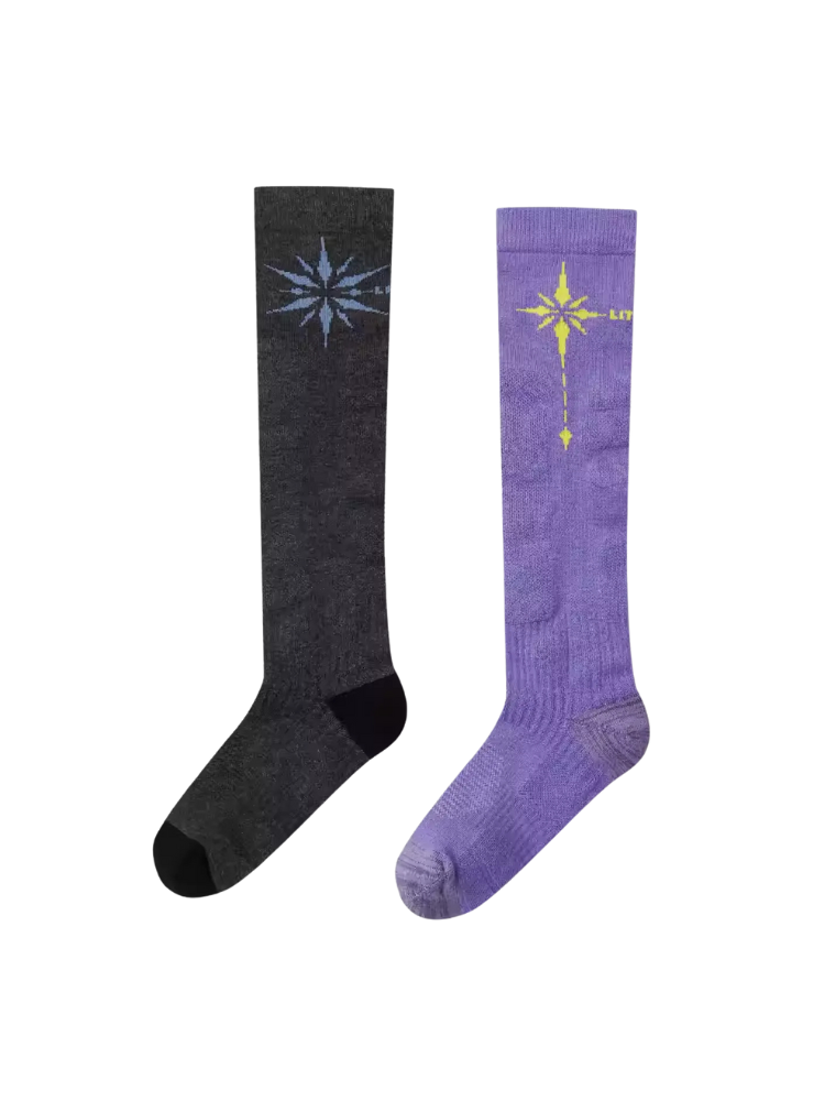 Keep your feet warm and supported with Litan Merino Wool Ski Socks. Thick, breathable, and moisture-wicking, with ergonomic cushioning, ankle support, and UV protection, these socks reduce fatigue and protect toes for all-day skiing comfort.