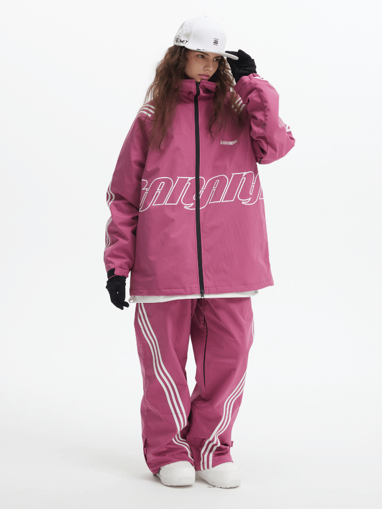 The pink snowboard jacket features three innovative side liners, providing unsurpassed warmth and comfort on the slopes....